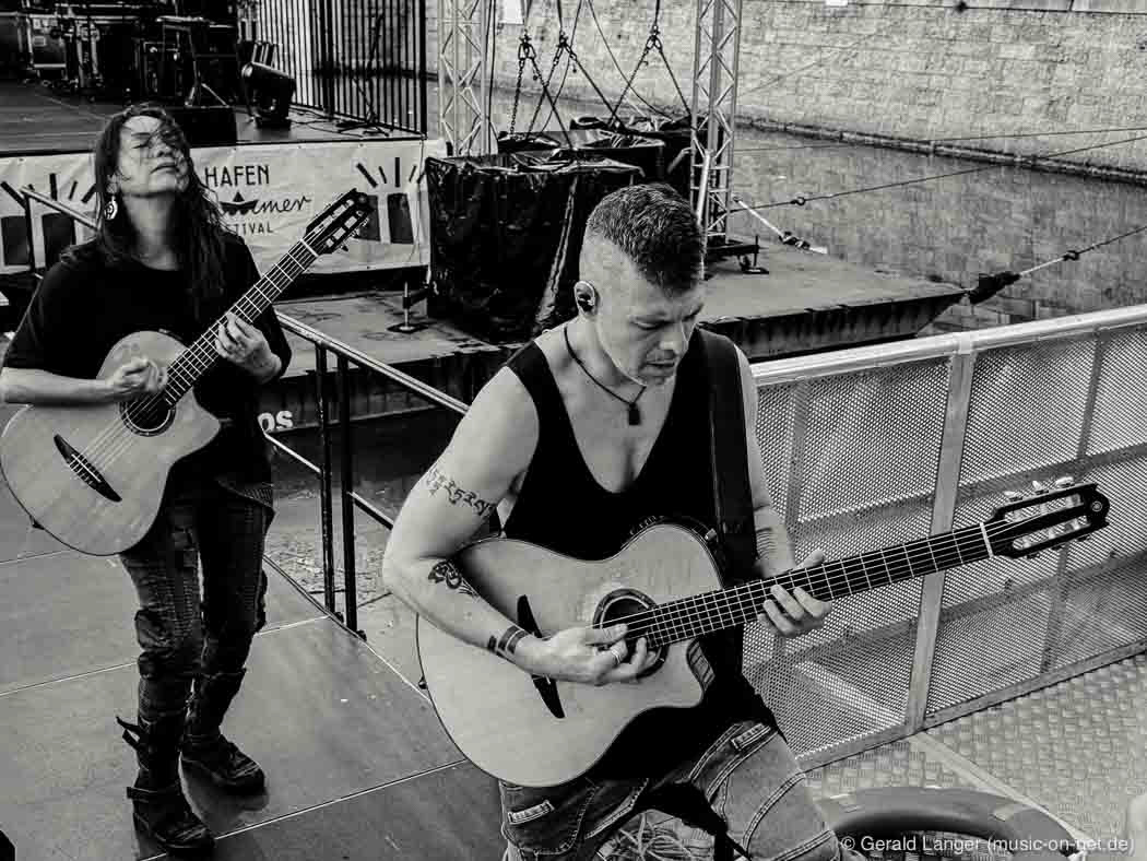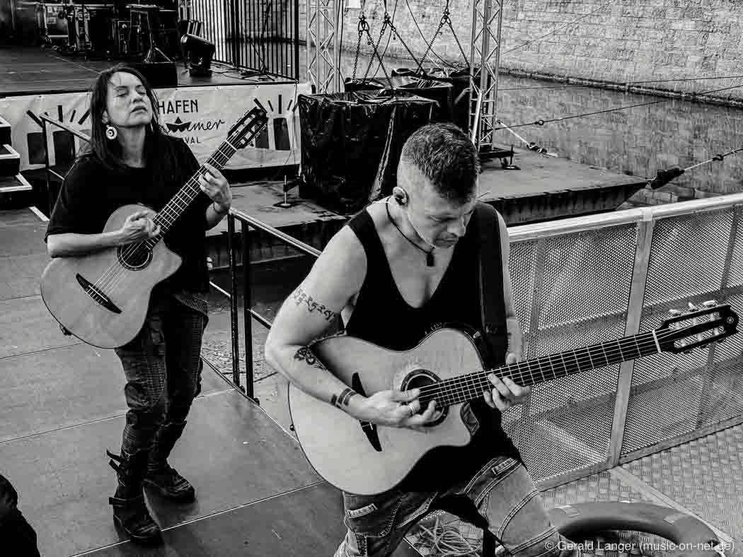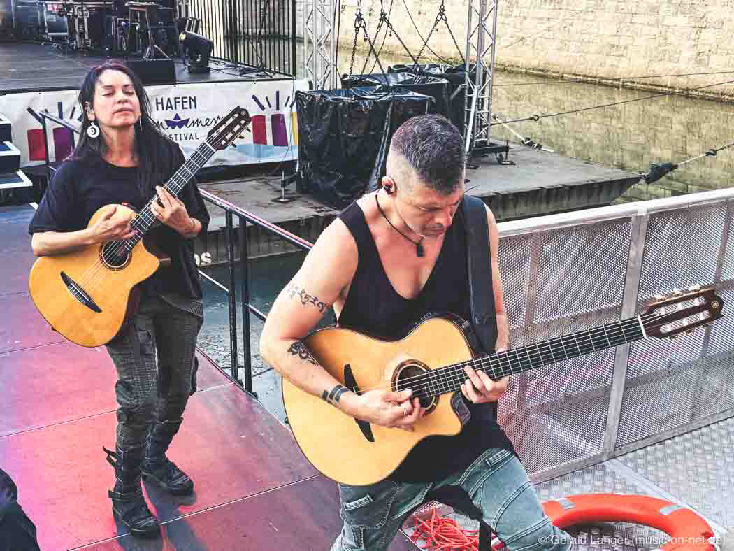 Das mexikanisxche Gitarren-Duo am 30.07.2024 beim Hafensommer Würzburg. Aufnahmen mit dem iPhone 15 Pro Max, in Lightroom nachbearbeitet.